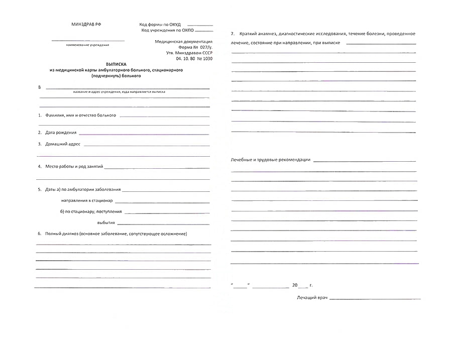 Главная / Виды справок / Выписка из истории болезни (форма 027/у)